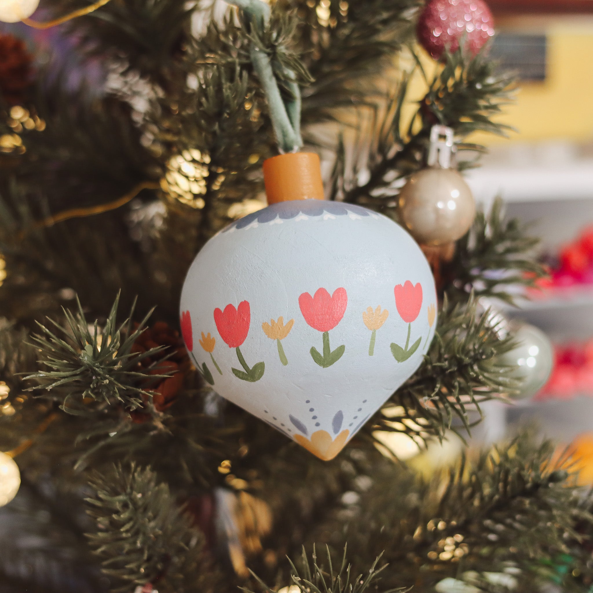 Dainty Tulips - Hand-Painted Wooden Ornament Bulb