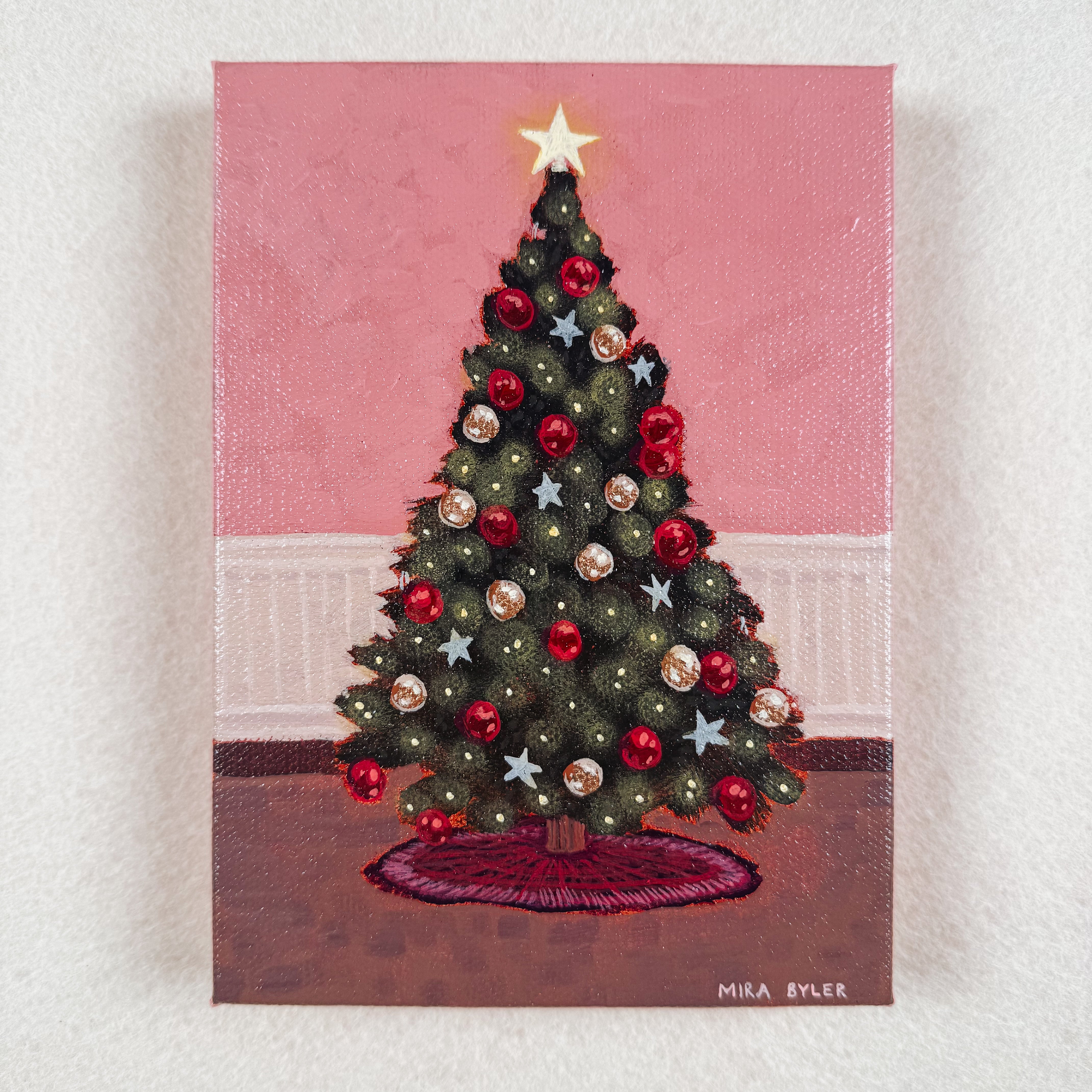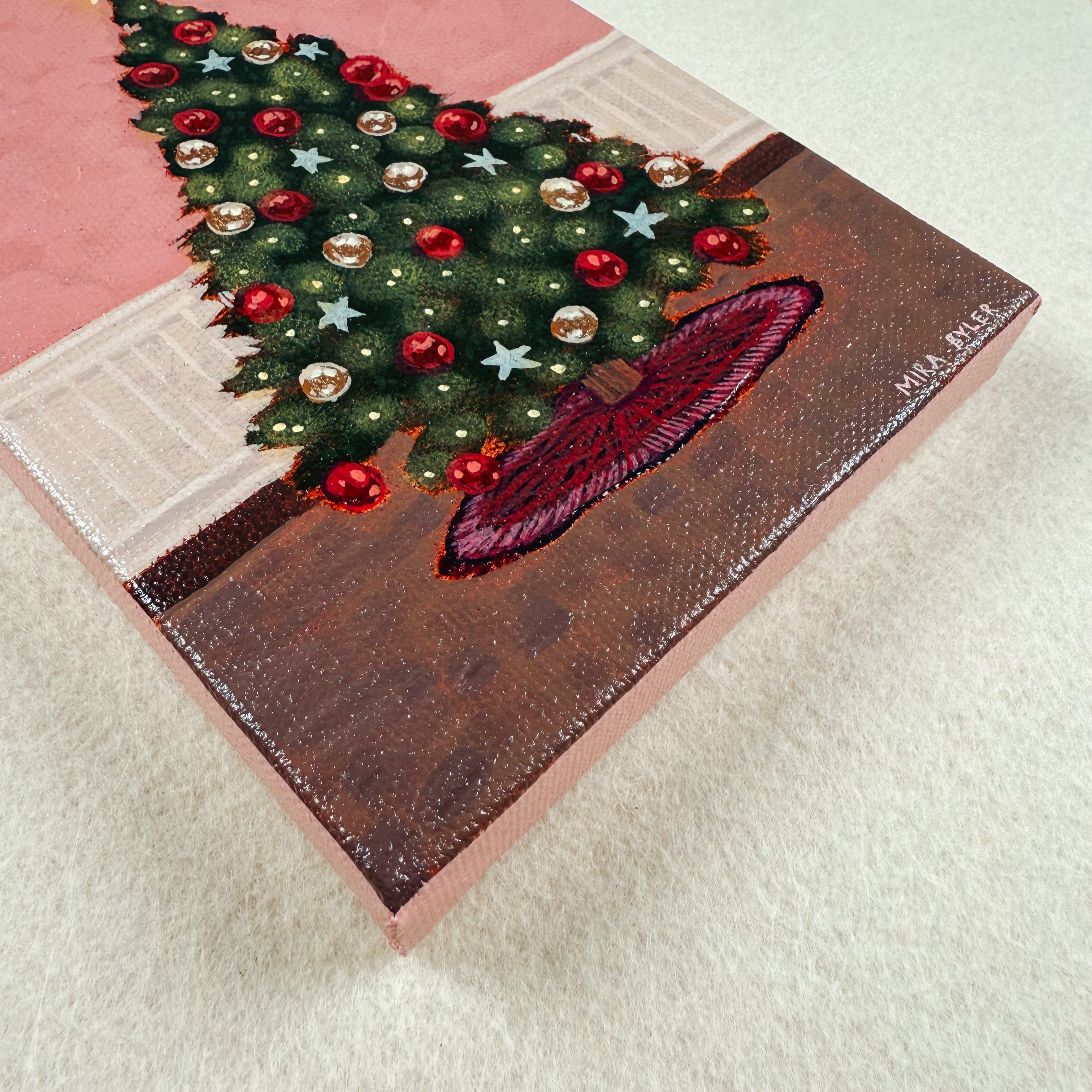 Add a touch of coziness and festivity to your home with this adorable mini Christmas tree painting!